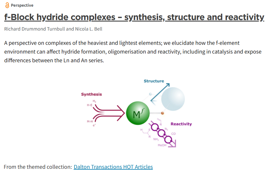 Our recent perspective article on f-block hydrides has been selected as a HOT article by Dalton Transactions.